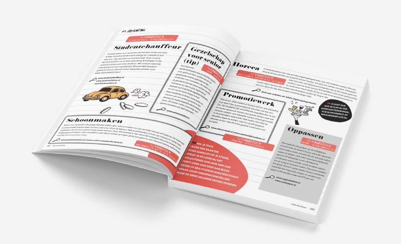 De ‘Geldgids voor eerstejaarsstudenten’ staat boordevol tips voor als je gaat studeren. Studeren en op kamers is een spannende grote stap! Iedereen die gaat studeren loopt (zeker financieel) tegen allerlei grote en kleinere issues aan. Deze gids is samengesteld door 6 kersverse studenten die een heel jaar lang hun tips en trucs bijhielden en die nu op een toegankelijke wijze delen. Voor alle scholieren die op een leuke manier willen lezen hoe je een kamer zoekt, of je wel of niet moet lenen. En ook wat ga je koken, wat geef je uit, hoe overleef je het financieel iedere maand. Help! Deze gids is het perfecte cadeau voor iedereen die zijn of haar diploma heeft gehaald. Het boek heeft een frisse vormgeving met mooie illustraties door Maria Wiersma.