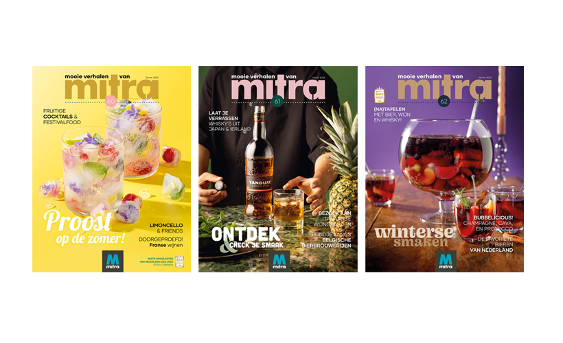 In het Mitra magazine vind je o.a. recepten, wijn, cocktails, mocktails, interviews, whiskey’s, op bezoek bij een wijnhuis of een bierbrouwerij, columns, winacties en nog veel meer. Loes Verhoeven is de hoofdredacteur, wij zijn verantwoordelijk voor de vormgeving en de fotografie wordt gedaan door Studio 38˚C.